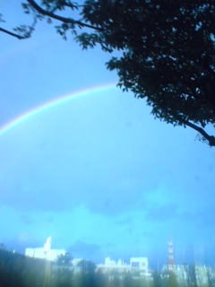 月曜日の朝。 お天気は薄曇りにもかかわらず、 大きな七色のアーチが頭上に輝き気持ちがアップ! 早朝出勤はこんな風に自然が織り成すアートと出会て良いね♪