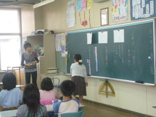 昨日はムスメの8回目の誕生日でした。(そう、先日の番組のテーマにもなっていましたが、いい肉の日なのです(笑)この日は偶然にも(というか、急遽)学級参観でした♪道徳の時間は、「いいこと、わるいこと」がテーマ。金魚や花への餌やりや水やりについて、子どもたちがみんな真剣に意見を述べ合いました。みんなちゃーんと、金魚や花の気持ちに寄り添って考えることが出来ていて感動!子どもは大人よりも、他の生き物の傍にいるんだね。最後のテーマは、「クモにひっかかったせみを逃がすか逃がさないか?」どちらか選んだ方に自分の名前のマグネットを、黒板に貼りに行くのですが、ムスメは最後までどちらかを選べずに黒板の前に立ちすくんでしまいました。先生はどうしても決められなかったムスメの名前を、真ん中に貼りつけてくれました。クモも、せみも、どちらの命も大切に思う子になってくれて、また、人に流されず、自分の考えをしっかり持つことが出来る子になってくれているんだと思うと、大感動でした!誕生日の参観は、親への最高のプレゼントでもありました。ありがとう。