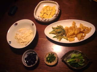 茹で空豆をメインに思い描きながら、居酒屋のようなメニューに(笑)
