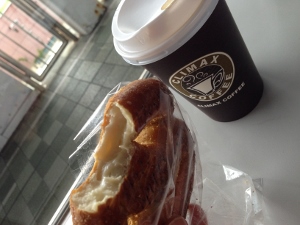クライマックスコーヒーのクリームチーズプレッツエル!熱々を出してくれるので、外はカリカリで中はチーズがとろとろでたまらなく美味しいー。ヨガの後、最高に幸せになれます。