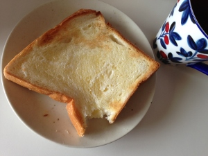 ふわふわの食パンが食べたかったので、今週末は大雨の中を北谷まで。ヨガのつとむ先生に「超おいしい食パンがあるよー。」と教えてもらったお店 maybe bakery へ。本当に超おいしかった!(写真は我慢できず思わずひと口後・・。(笑)失礼!)外はパリッと中はふわふわ。他のパンもすべて美味でした。今度は晴れた日にアラハビーチで食べよう!